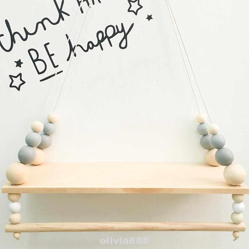 Kids Room Wooden Wall Shelves Natural Wood Beads Wall Shelf