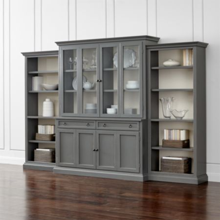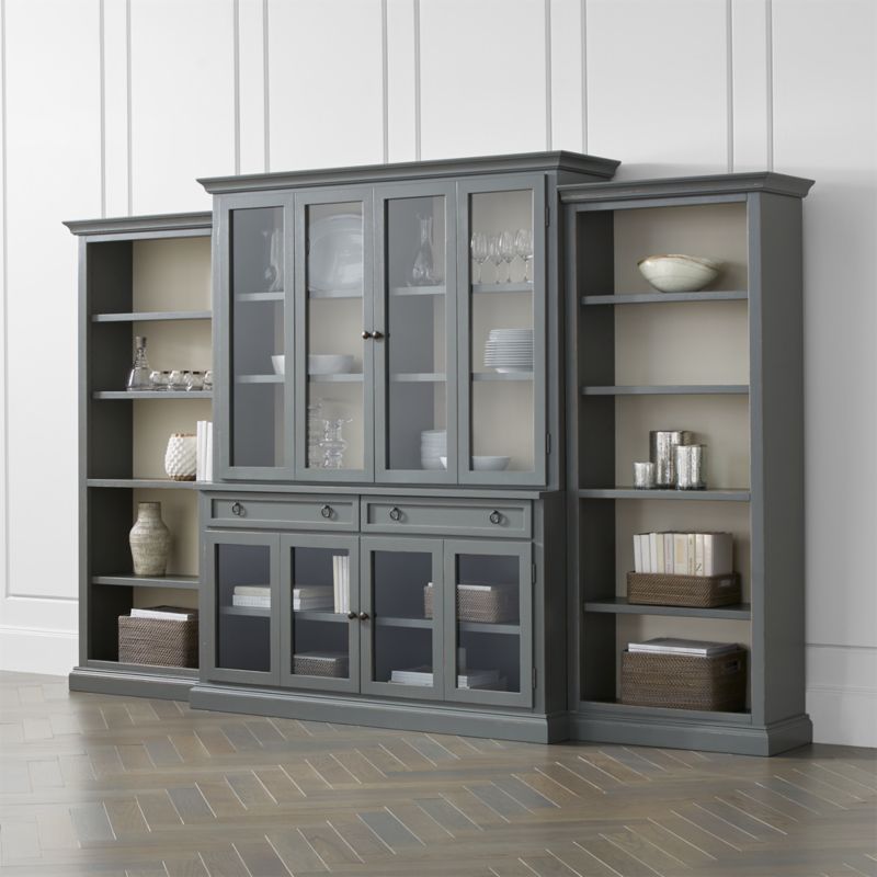 Cameo 4 Piece Grey Glass Door Wall Unit With Open Bookcases
