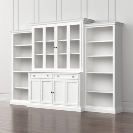 Cameo 4 Piece White Glass Door Wall Unit With Open Bookcases