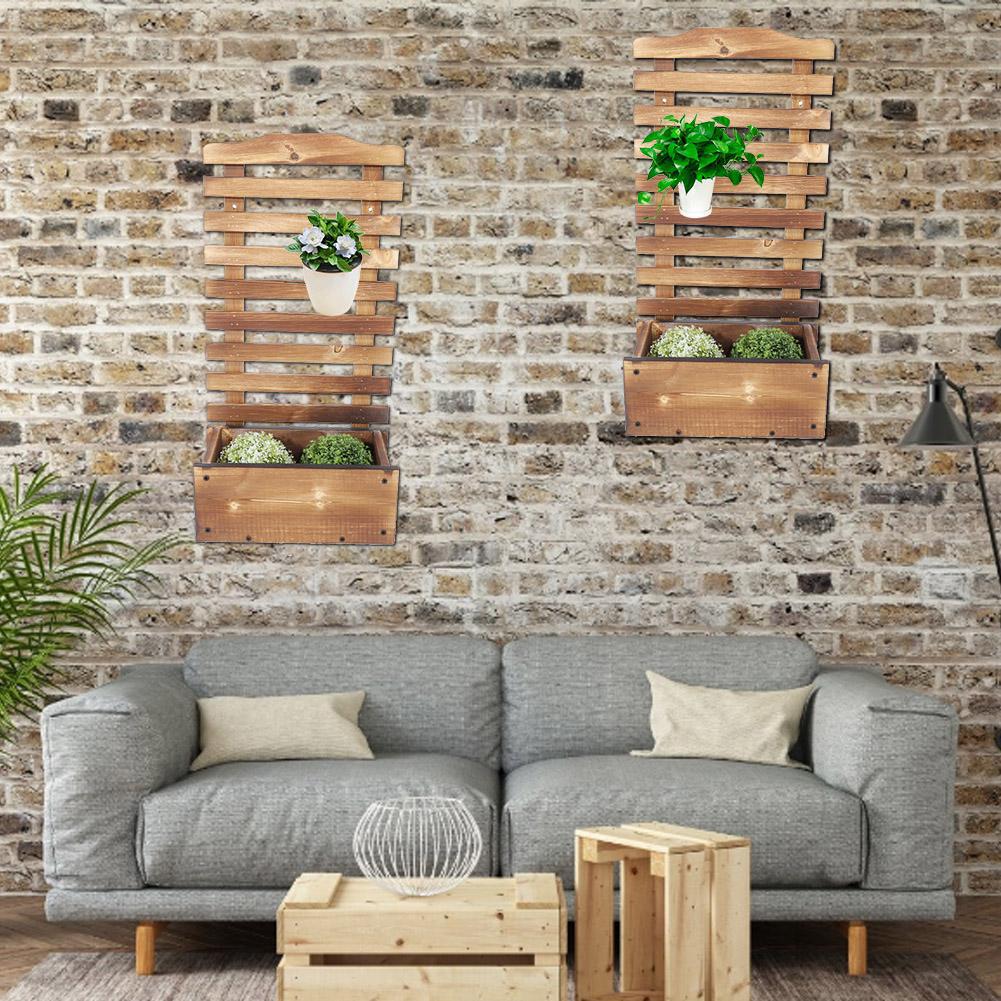 Wood Flower Pot Plant Holders Set Indoor Hanging Planter Vase Wall