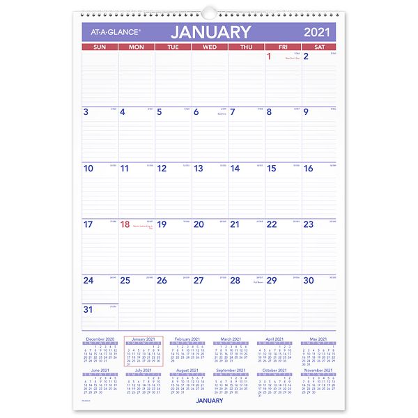 Monthly Wall Calendar With Ruled Daily Blocks By At A Glance