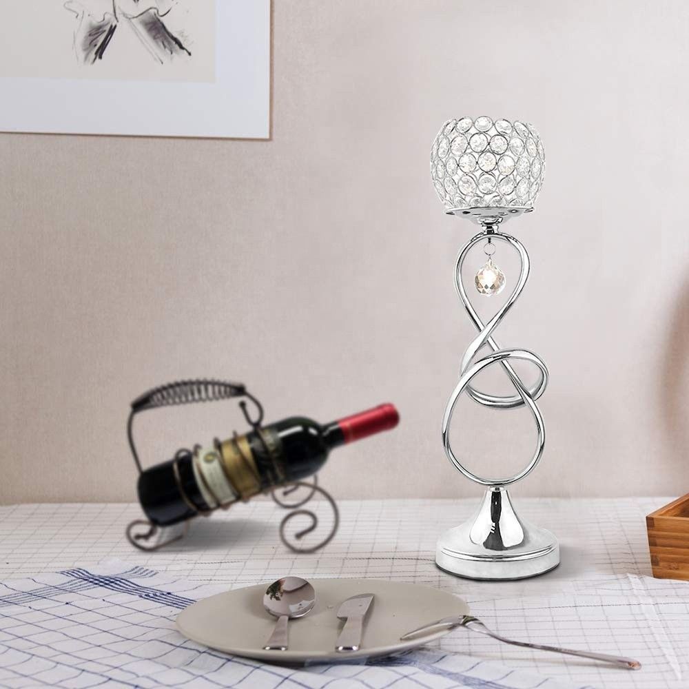Silver Metal Crystal Tea Light Candlestick Holders For Coffee