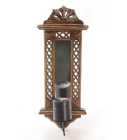 Buy Pebble Crafts Wood Wall Hanging Mirror Reflection Candle Holder 7 X 1 X 20 Inch Brown Online At Low Prices In India Amazon In