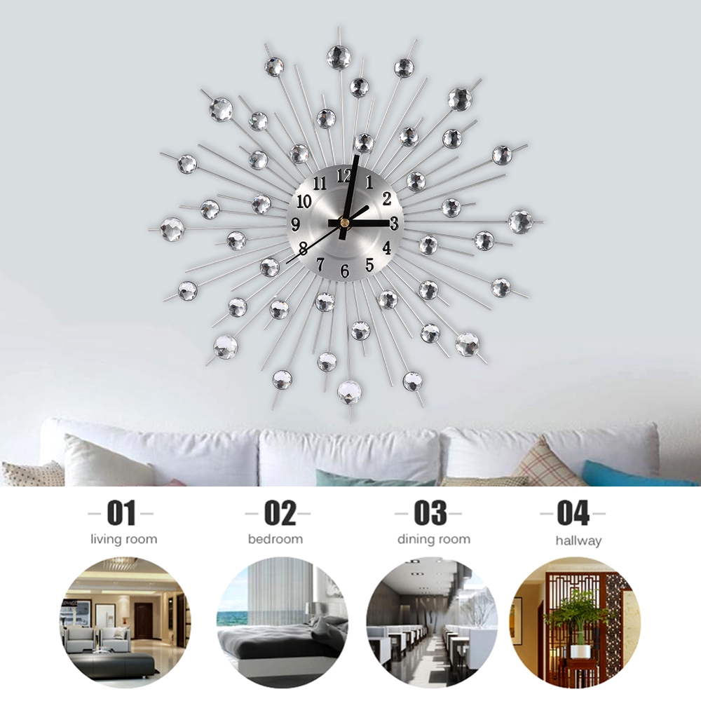 Walfront Fashion Luxury Diamond Studded Metal Wall Clock Living