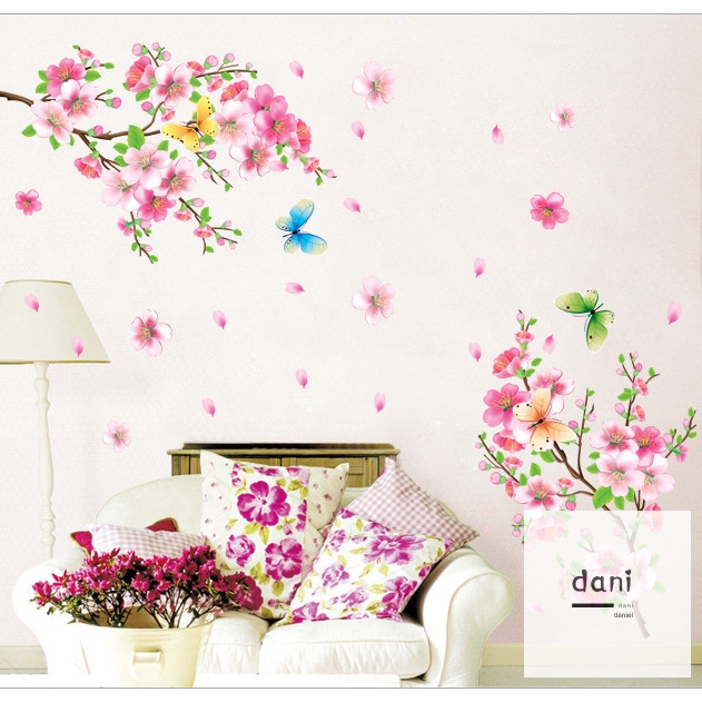 Dn Romantic Flower Butterflies Wall Stickers Peach Blossom Living