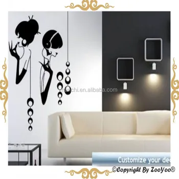 Fashion Girl Listening Music Salon Wall Stickers Bedroom Tv