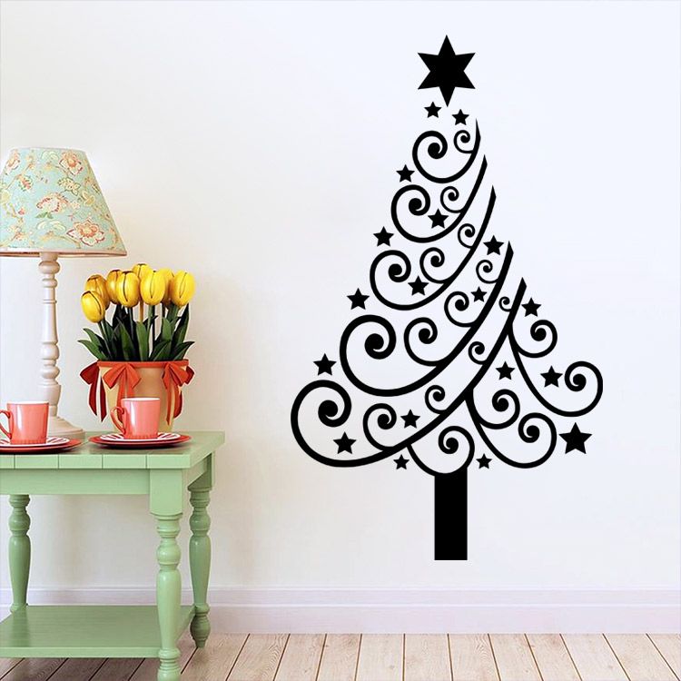 M 4 Festive Christmas Tree Flower Star Pvc Diy Wall Stickers Kids