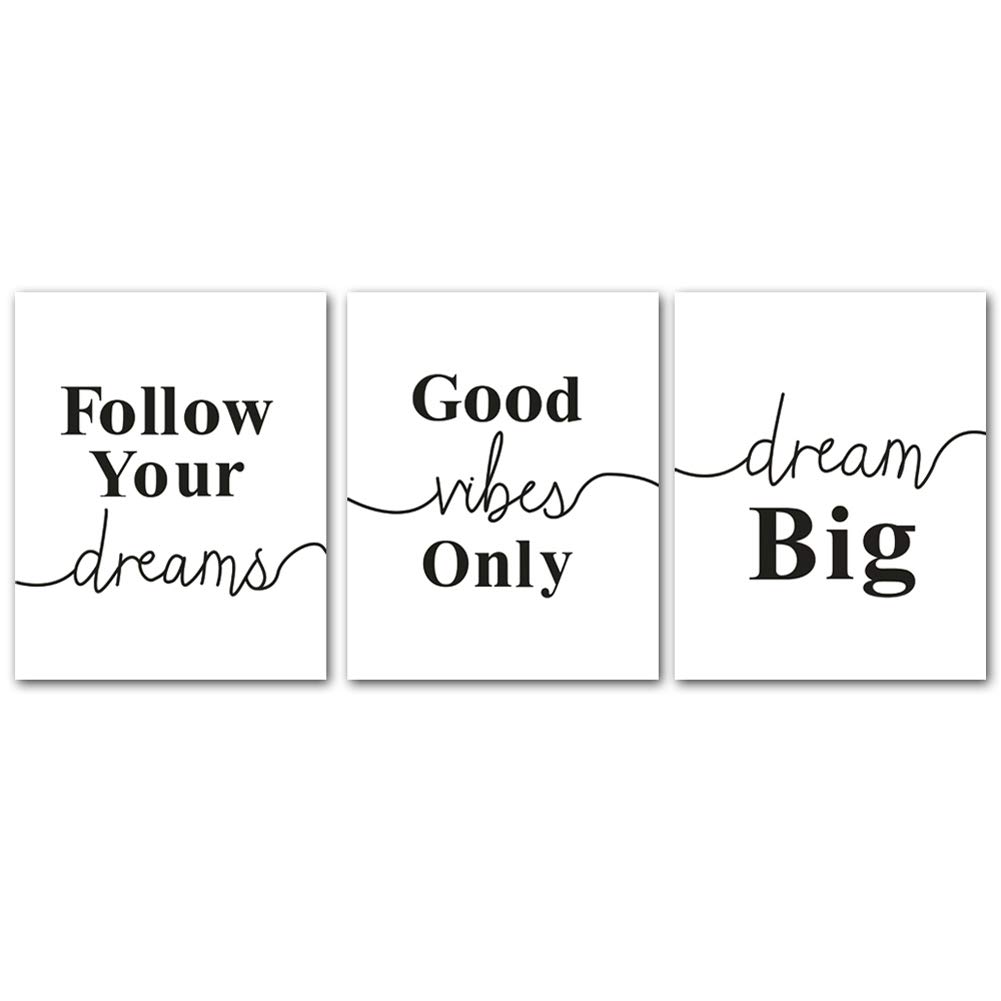 Nordic Minimalist Dream Big Quote Wordart Canvas Painting Black