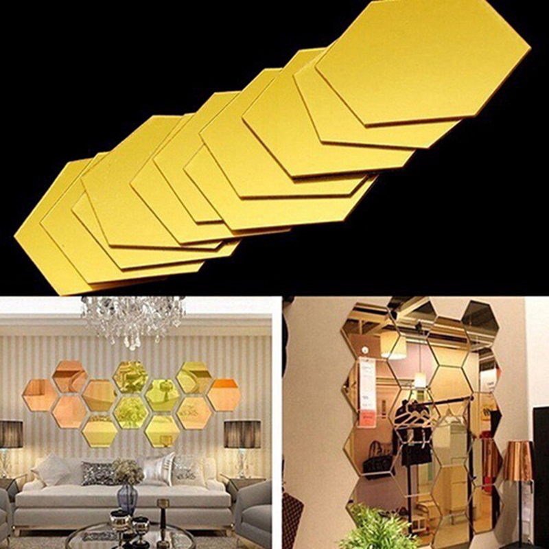 Gold 12pcs Mirror Art Diy Home Decorative 3d Hexagonal Acrylic