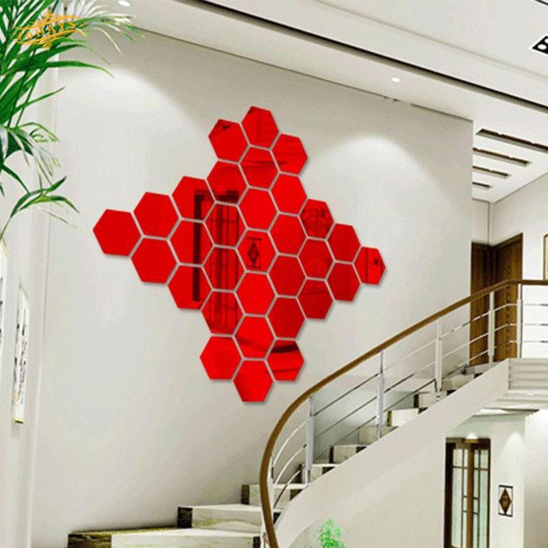 1 Pcs 3d Hexagon Acrylic Mirror Wall Stickers Diy Art Wall Decor