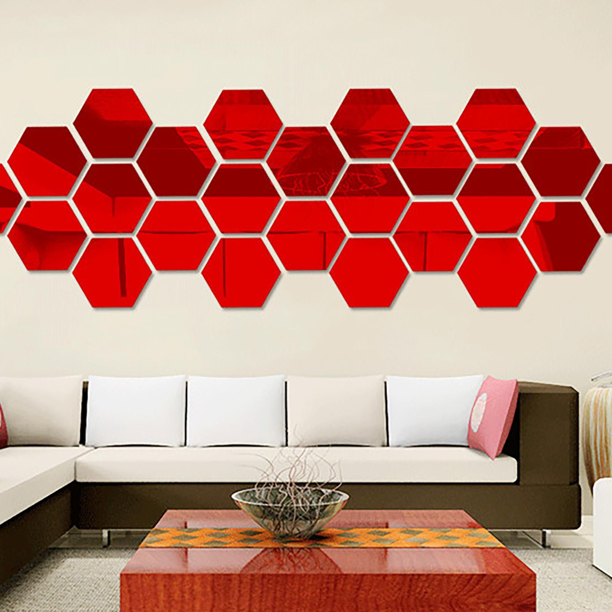 12pcs Pack Wall Art Mirror Sticker Decal Hexagon Mirror Living