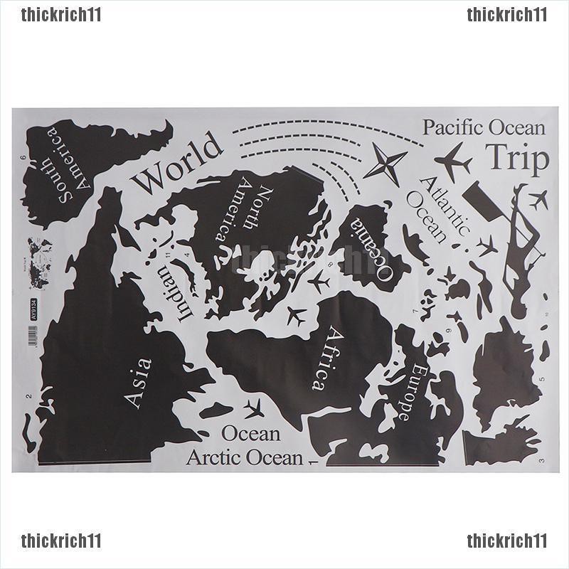 Thick Large Size World Map Wall Stickers Black Map Of The World Home Decor Wall Decals Shopee Indonesia