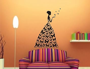 Buy Beautiful Princess With Butterfly Black Wall Sticker And Wallpaper Size 59 89 Cm Online At Low Prices In India Amazon In