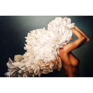 Modern Canvas Print Sexy Lady Flowers Painting Feather Wall