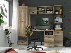 Oak Grey Rustic Home Office Furniture Set Tall Unit Wall Shelving