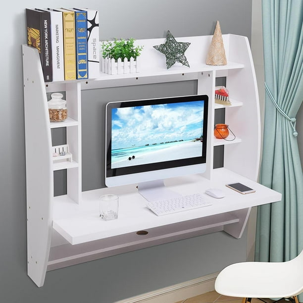 Floating Desk Wall Desk Shelves Space Saving Wall Mount Laptop
