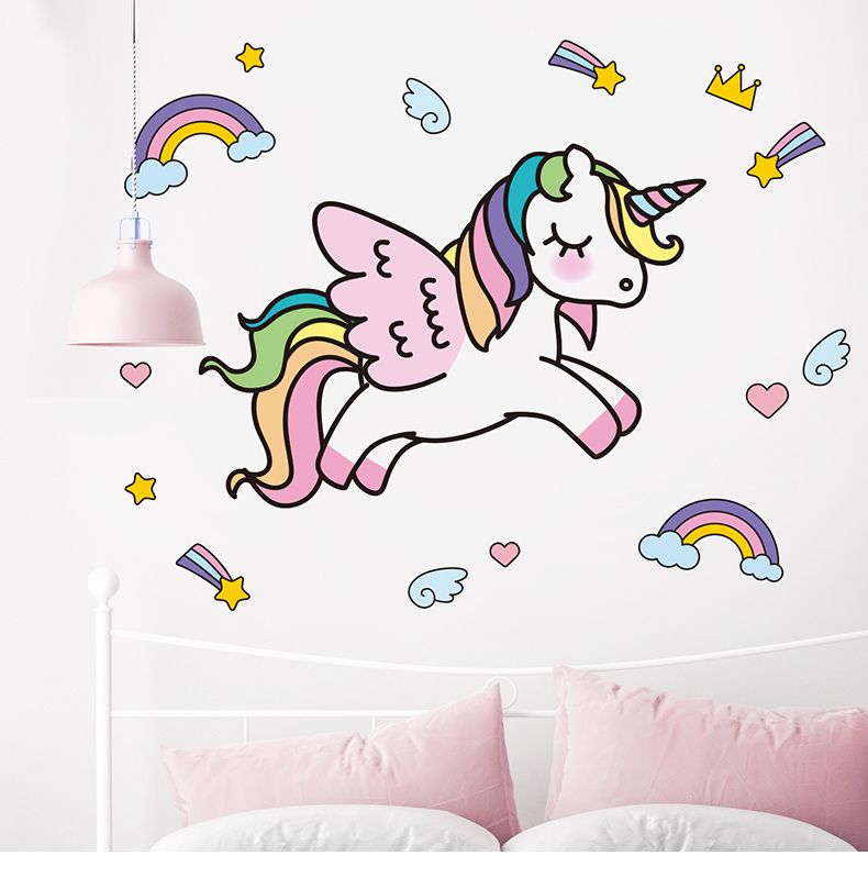 Cartoon Unicorn Wall Stickers For Kids Rooms Girls Rooms Bedroom