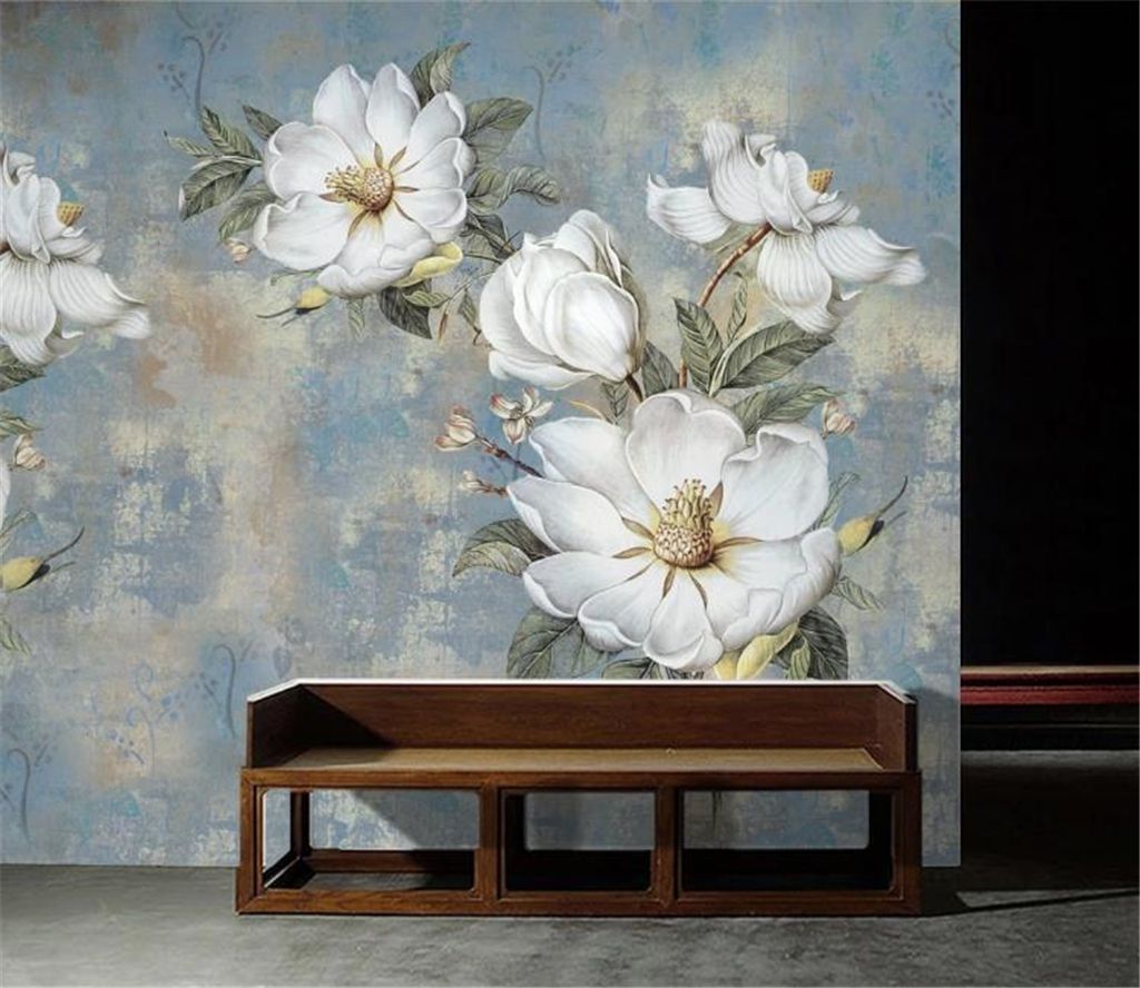 Online Wholesale Wallpaper Vintage Oil Painting Flower Wall
