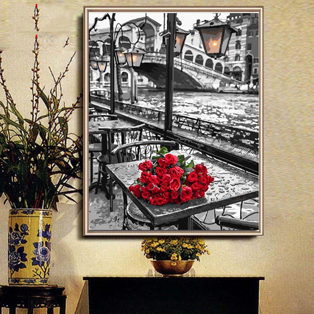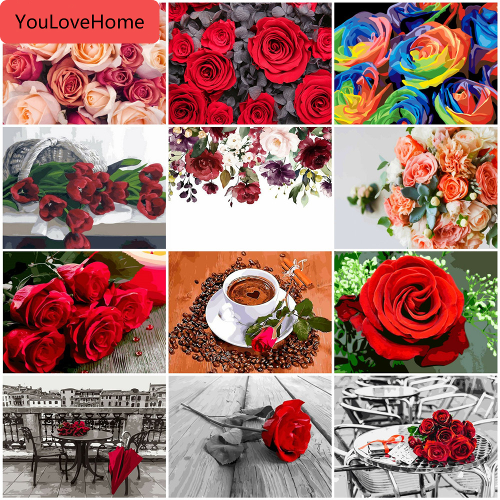 Rihe Rose Flowers Painting By Numbers Wall Art Picture For Living