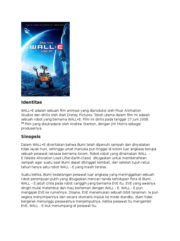 Iza Anwar Sinopsis Film Dan Review Film Wall E 2008