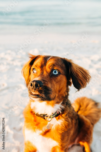 Close Up Of A Wall Eyed Crossbreed Dog Looking At The Camera