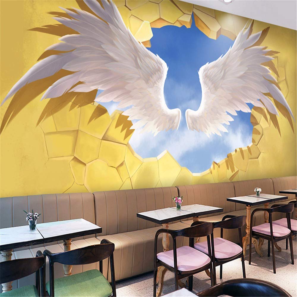 Amazon Com Wall Stickers For Bedroom 3d Hand Drawn Stereo Angel Wings Wallpaper Industrial Wind Graffiti Background Mural Restaurant Bar Ktv Broken Wall Paper Wall Stickers Baby