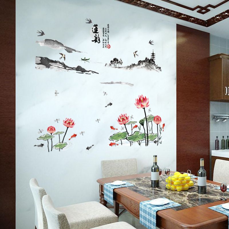 Chinese Style Floral Boat Painting Vinyl Wall Art Sticker Decal