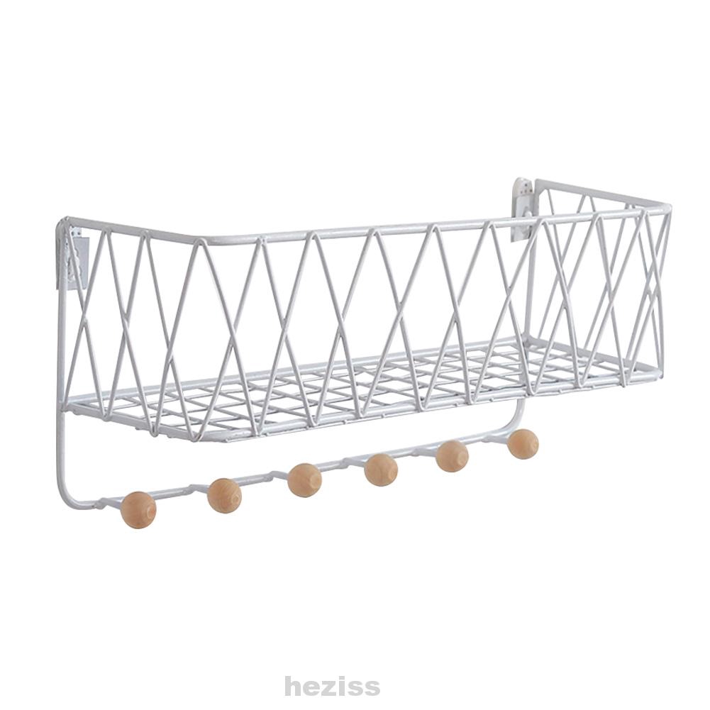 Storage Shelf Wall Mount Iron Grid Wood Hook Bedroom Holder Living
