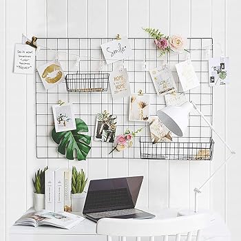 Amazon Com Gbyan 2 Pack Wall Grid Panels Photo Display Multifunctional Wire Wall Organizer Iron Rack With Decoration Light For Hanging Pictures Small Plants 25 6 X17 7 Each Grid Panel