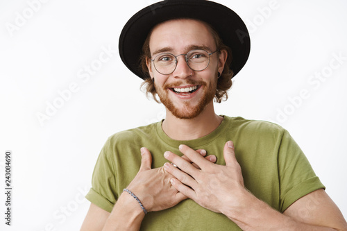 Surprised Happy Thankful Guy In Hat And Glasses Being Delighted
