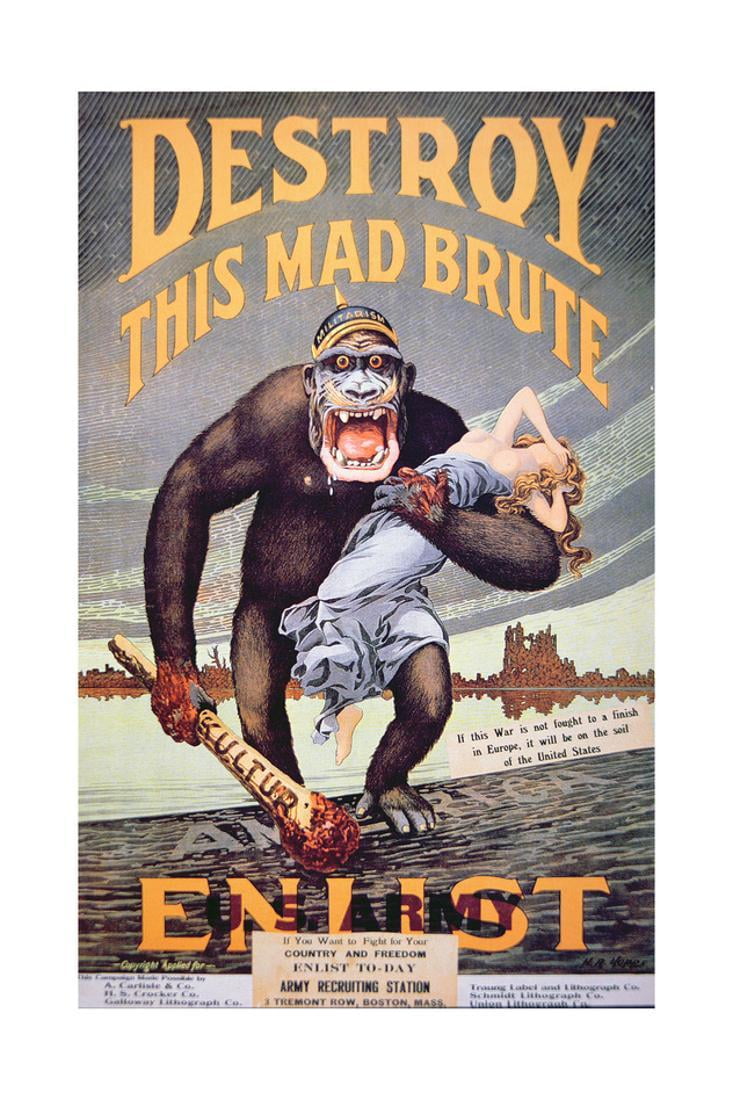 Destroy This Mad Brute World War One Recruitment Poster Print Wall Art Walmart Com Walmart Com