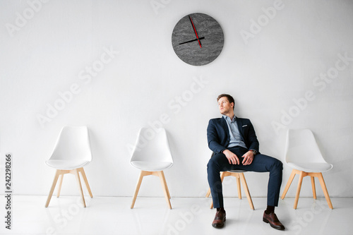 Back View Of Business Man Pushes Wall Guy In A Gray Jacket Waving His Arms Buy This Stock Photo And Explore Similar Images At Adobe Stock Adobe Stock