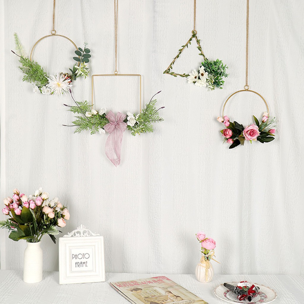 Artificial Flower Garland Wall Hanging Decorations Geometric Metal