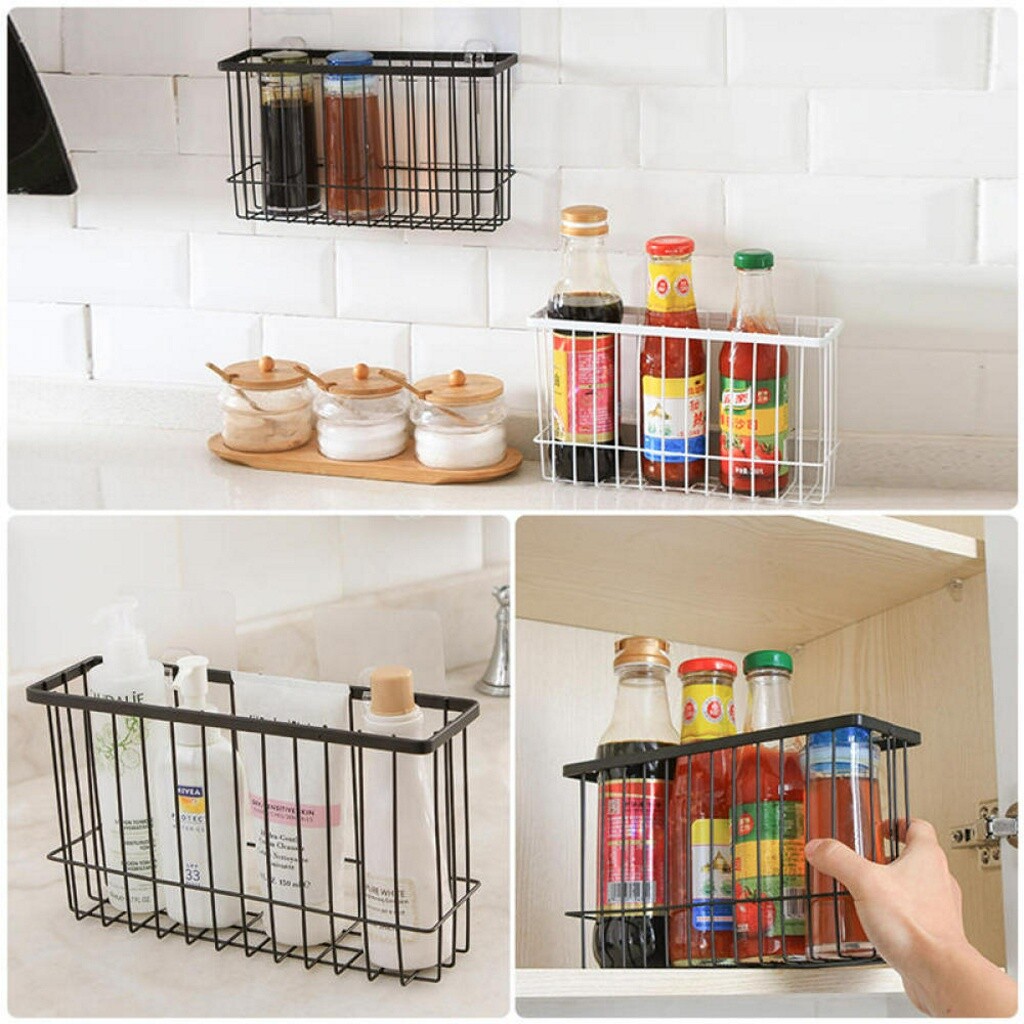 Wall Mounted Storage Baskets For Kitchen Bathroom No Hole Needed