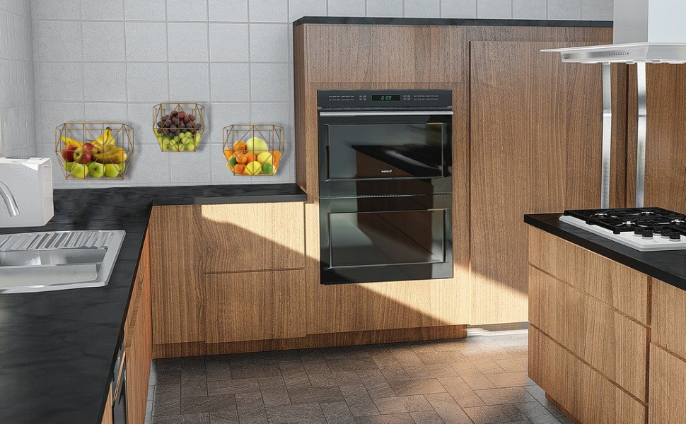Deluxe Heavy Duty Wall Mount Fruit Baskets For Kitchen Hanging