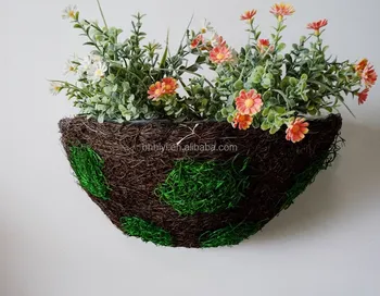 Handcraft Rattan Plant Pots Wall Hanging Flowerpot Rustic Half