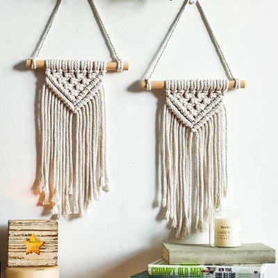 2 Pcs Macrame Wall Hanging Small Art Woven Wall Decor Boho Chic