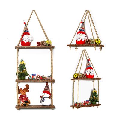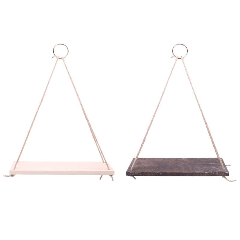 Wood Decorative Wall Hanging Shelf Swing Rope Floating Shelves