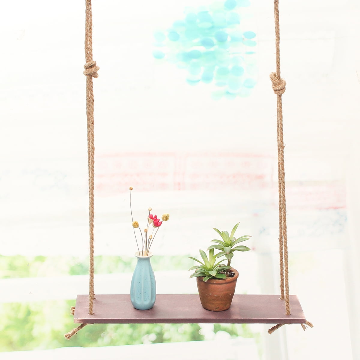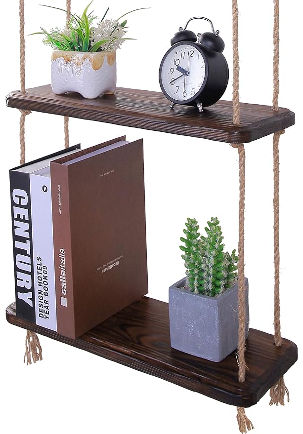 Premium Wood Swing Hanging Rope Wall Mount Floating Shelves Plant