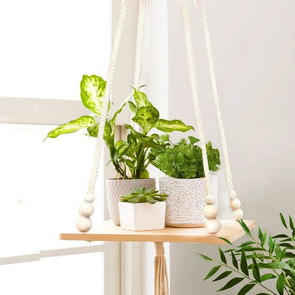 Boho Decor Plants Wood Hanging Shelf Hanging Plant Shelf Plant