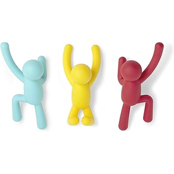 Amazon Com Umbra Buddy Wall Hooks Decorative Wall Mounted Coat Hooks For Hanging Coats Scarves Bags Purses Backpacks Towels And More Set Of 3 Bright Multicolored Home Kitchen