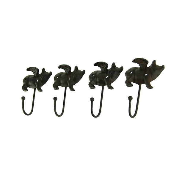 Set Of 4 Flying Pig Rustic Finish Cast Iron Wall Hooks Walmart