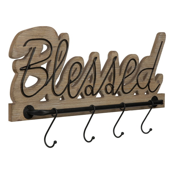 Rustic Wood And Metal Blessed Wall Hooks Walmart Com Walmart Com