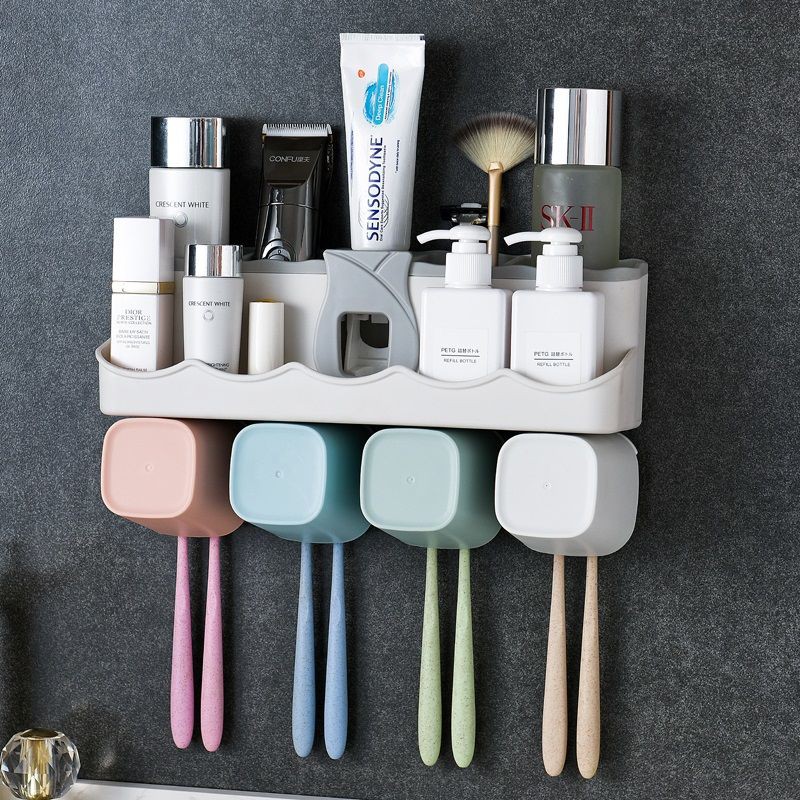 Toothbrush Holder Set Wall Mounted Holder No Hole Washing