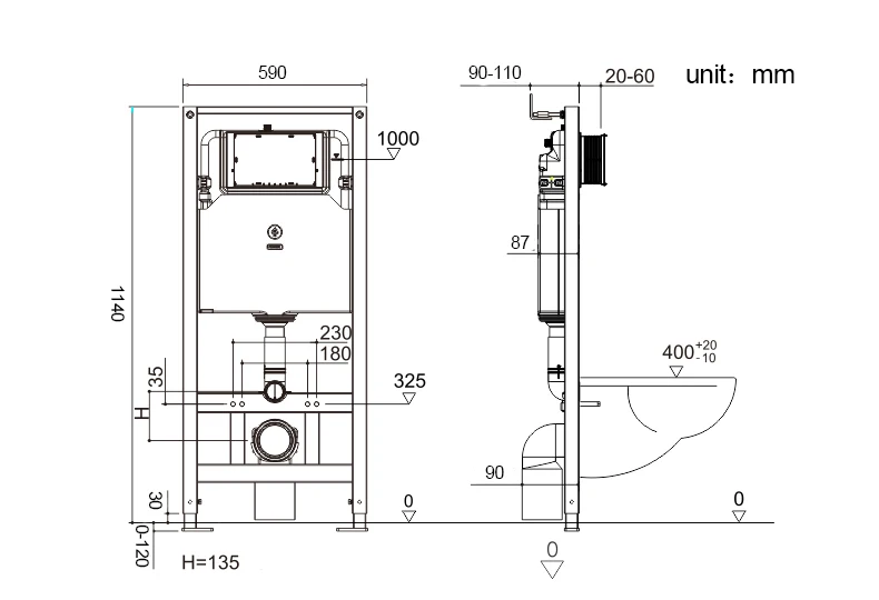 Cf02front Reduced Height Wall Hung Wc Bowl Frame System With Front