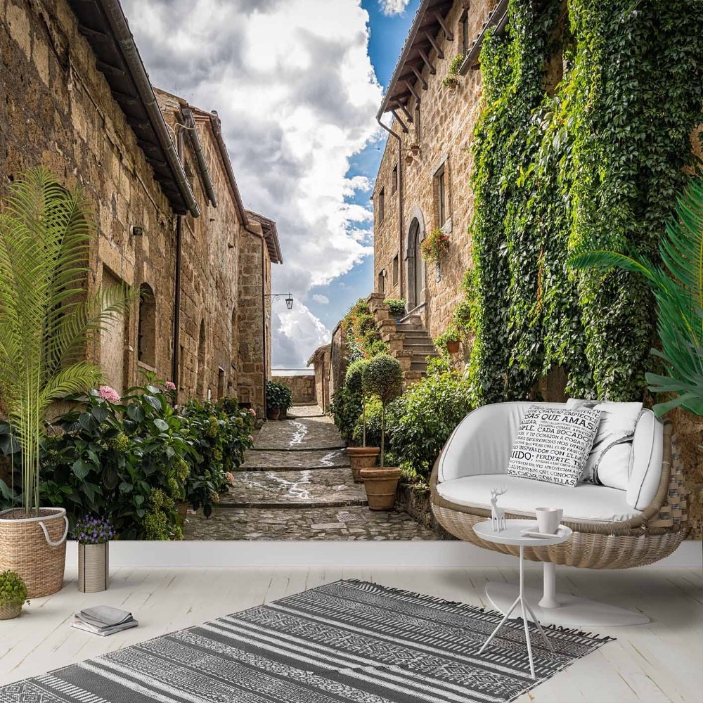 Else Brown Vintage Houses Green Ivy Leaves 3d Photo Mural Home