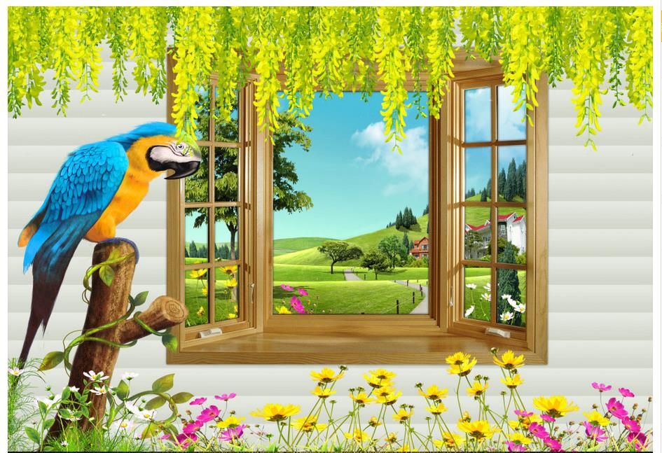 Custom Photo Wallpaper 3d Green Ivy Window Mural Wall Painting