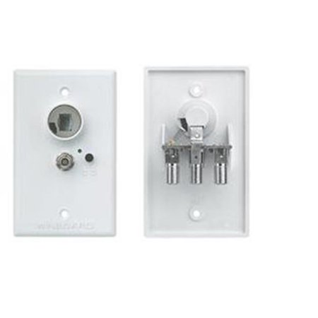 Steren Dual Rca Female With F Coaxial Cable Wall Plate White Audio