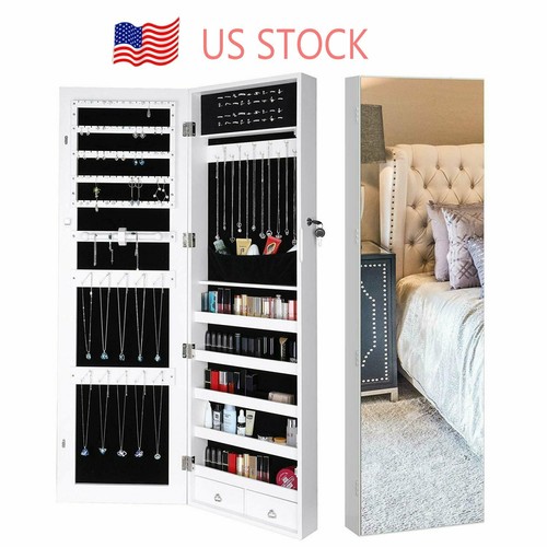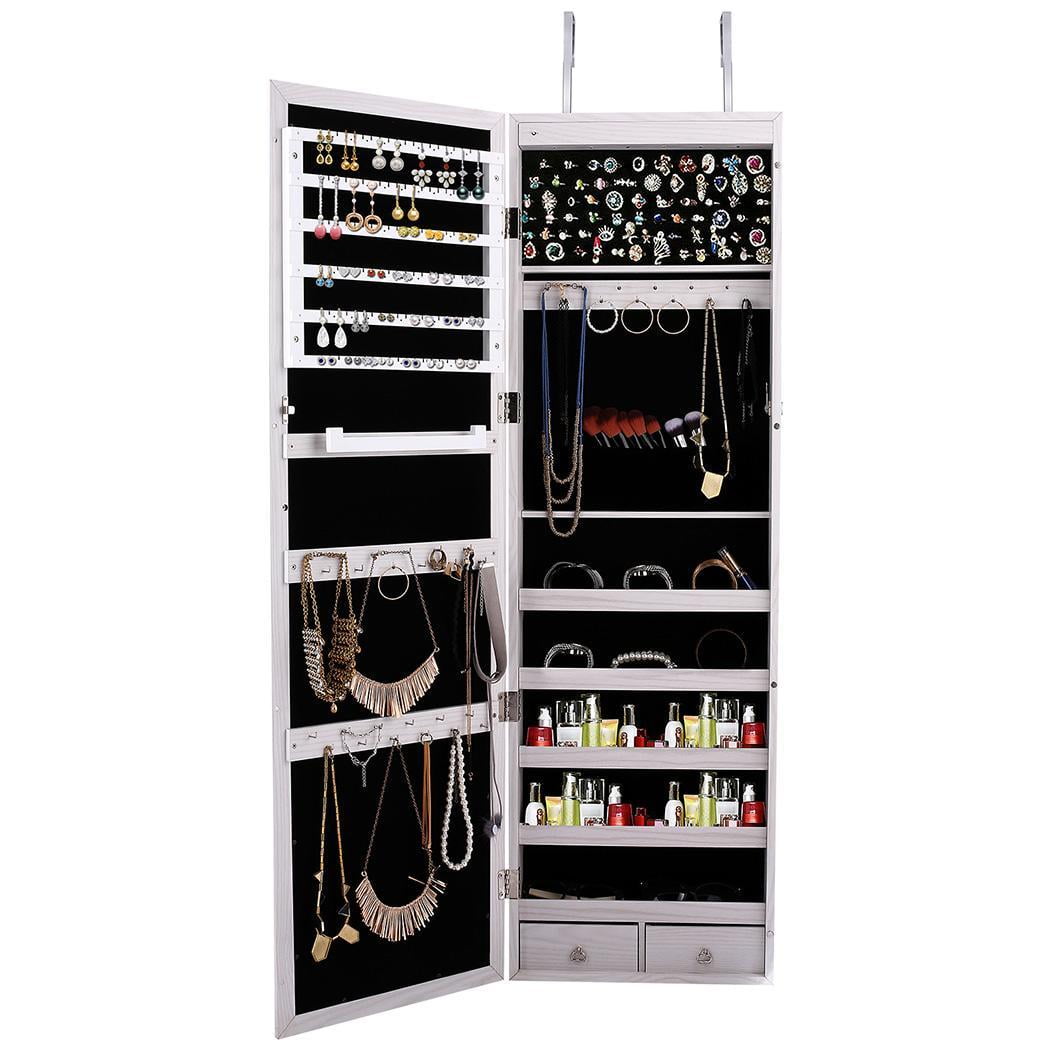 Wall Door Mounted Mirrored Jewelry Cabinet Armoire Storage