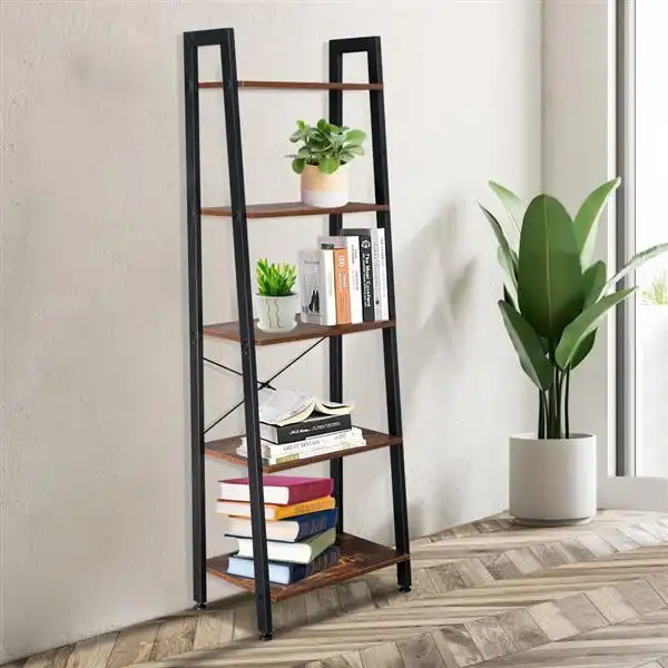 Industrial Ladder Shelf 5 Tier Bookshelf Rack Wall Shelf For